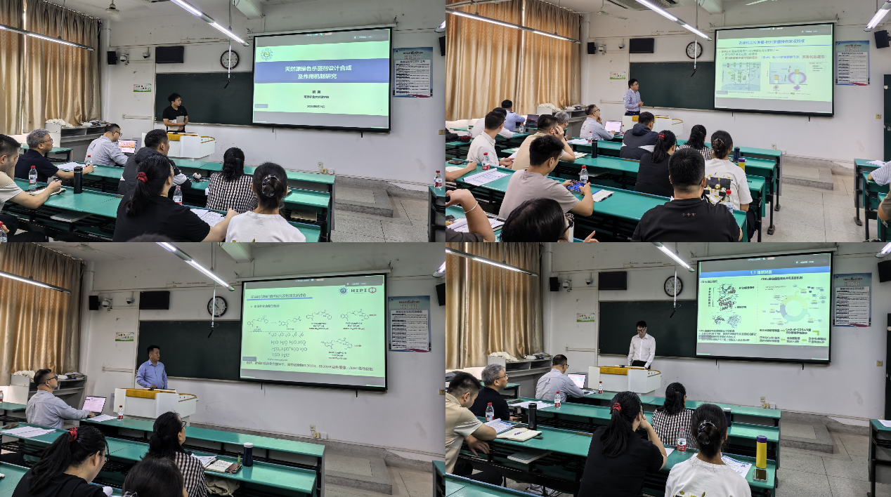 四名来自南京农业大学、中国药科大学、安徽中医药大学等高校的青年博士、博士后分别作了题为“天然源绿色杀菌剂设计合成及作用机制研究”“针对肿瘤高氧化应激水平的新型NQO1靶向ROS生成剂及前药的设计合成与抗肿瘤活性研究”“源于中药的新型NMDA-GluN2B受体拮抗剂的发现、结构优化及生物活性研究”“以细胞周期蛋白依赖性激酶为核心的双靶点抑制剂的设计、合成及生物活性评价”的学术报告。