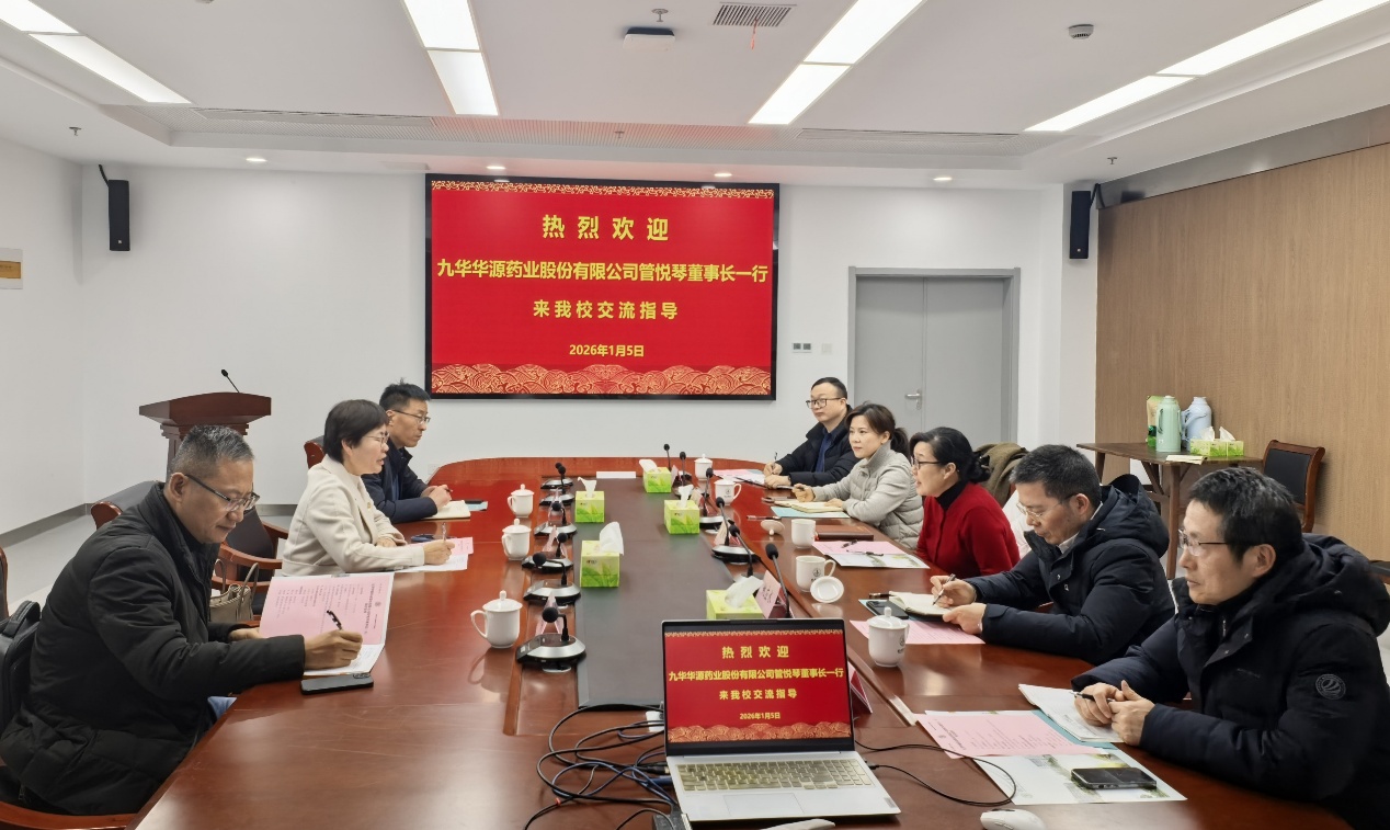 管悦琴对学校的热情接待表达了诚挚感谢,并对学校取得的成绩深感自豪。她介绍了九华华源药业在科技创新、产业链布局、药物研发等方面的发展情况,表示将竭力为母校高质量发展贡献力量,积极推动双方在更多领域的交流合作。